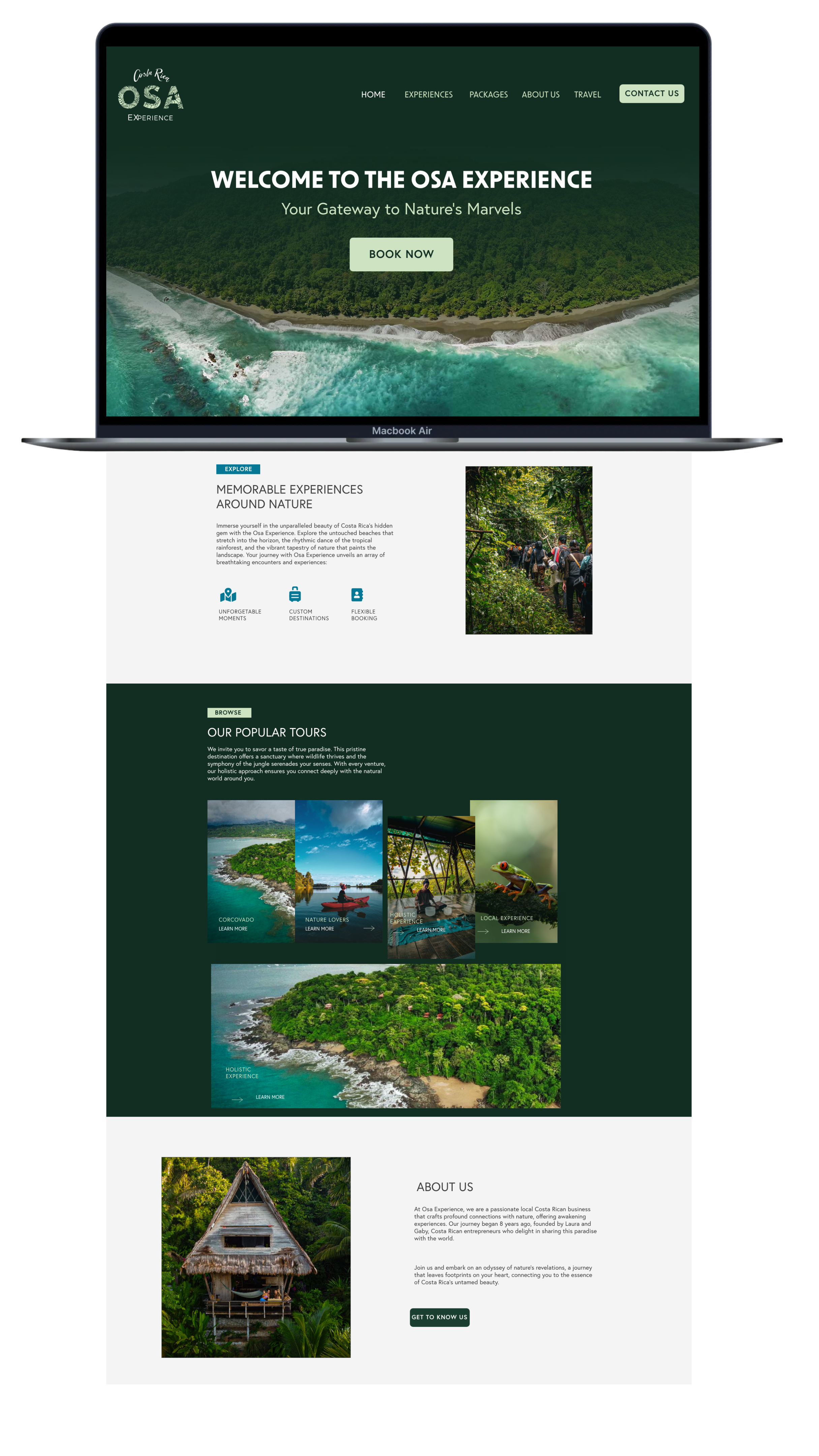 A dynamic website designed for Osa Experience, an eco-tourism company that offers immersive nature experiences in Costa Rica.